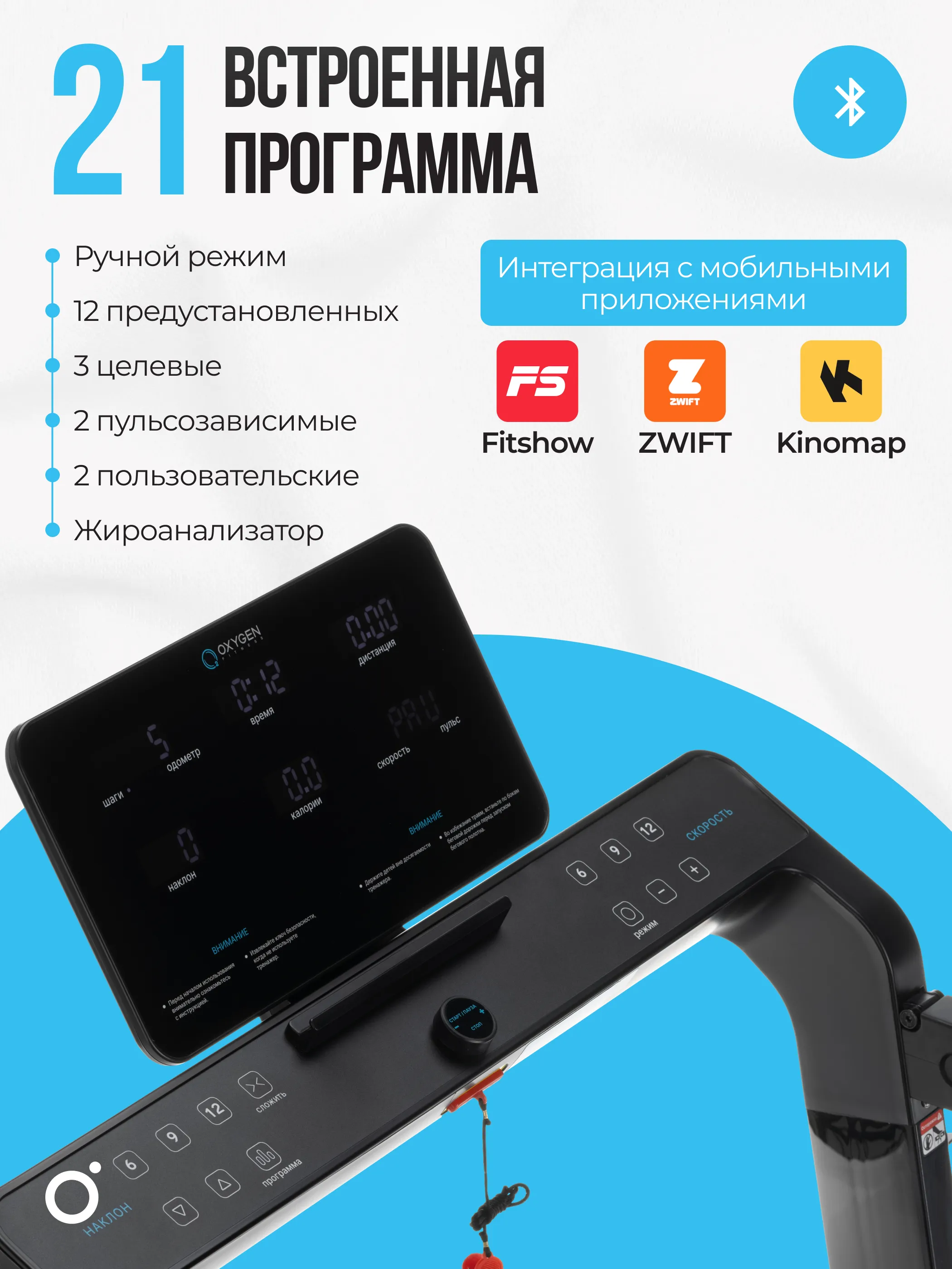 Благодаря интеграции Bluetooth вы сможете работать с тренировочными мобильными приложениями, такими как Fitshow, Kinomap и ZWIFT, расширяя свои возможности и добавляя разнообразие в тренировки.
