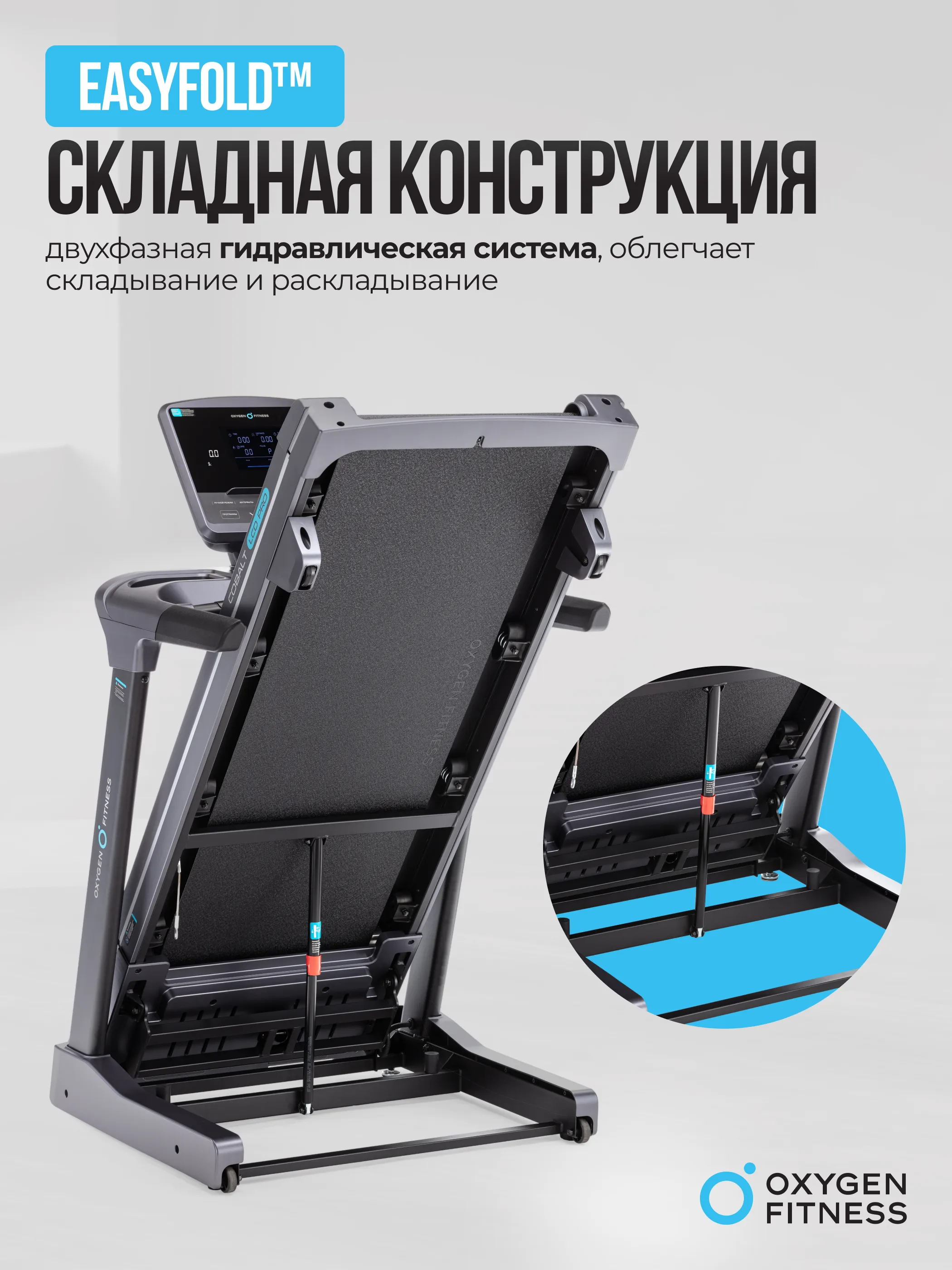 Складная конструкция с двухфазной гидравлической системой easyFOLD™ делает хранение дорожки максимально удобным. В сложенном виде она занимает всего 128 см в длину, 89 см в ширину и 160 см в высоту, что позволит вам экономить пространство, не жертвуя качеством тренировок.