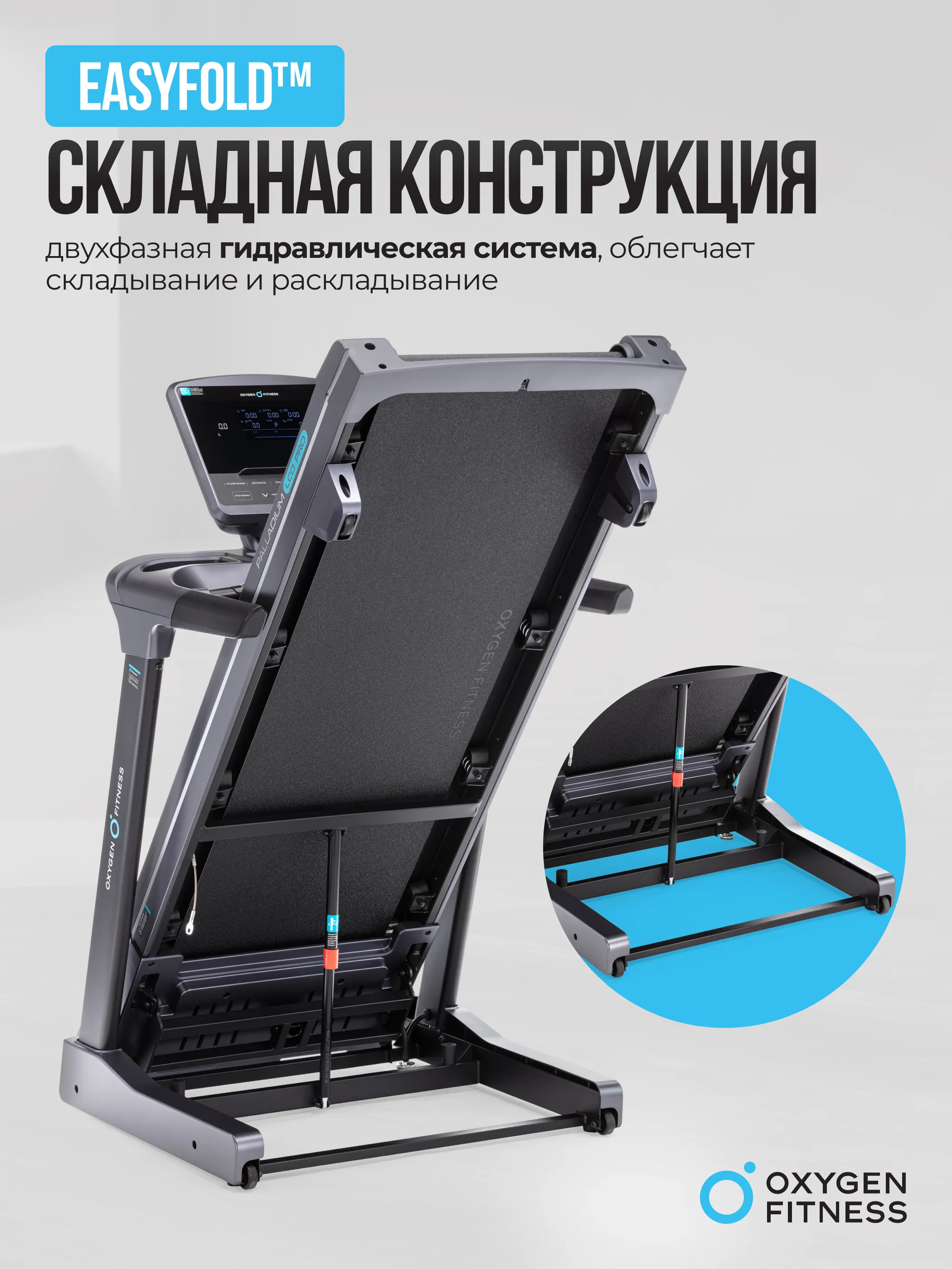 Складная конструкция с двухфазной гидравлической системой easyFOLD™ делает хранение дорожки максимально удобным. В сложенном виде она занимает всего 128 см в длину, 89 см в ширину и 160 см в высоту, что позволит вам экономить пространство, не жертвуя качеством тренировок.