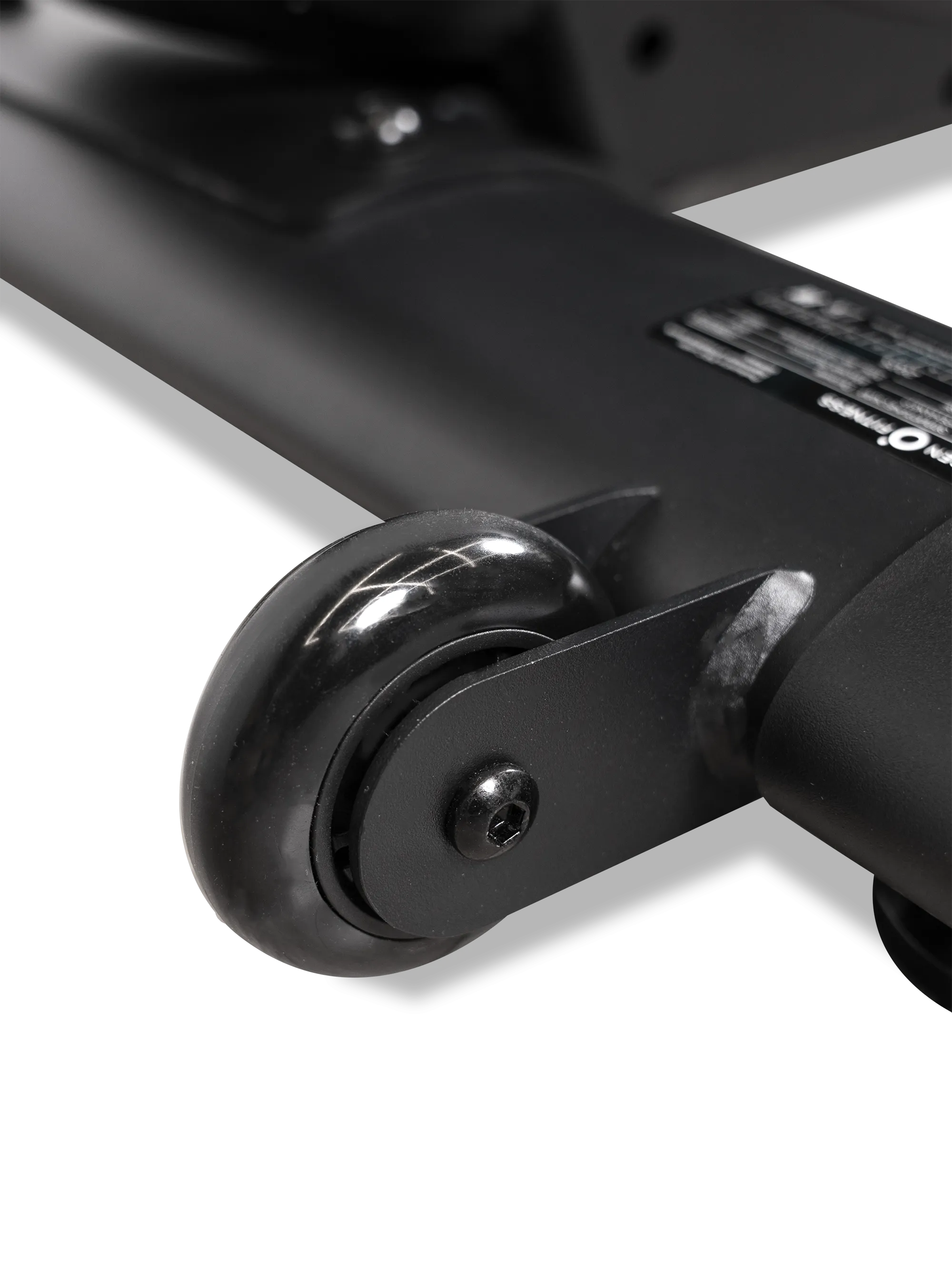 Тренажёр построен на высокопрочной раме с антикоррозийной обработкой и двухслойной покраской, что обеспечивает устойчивость и долговечность конструкции. Корпус выполнен из ударопрочного полистирола HIPS, рассчитанного на длительную эксплуатацию.