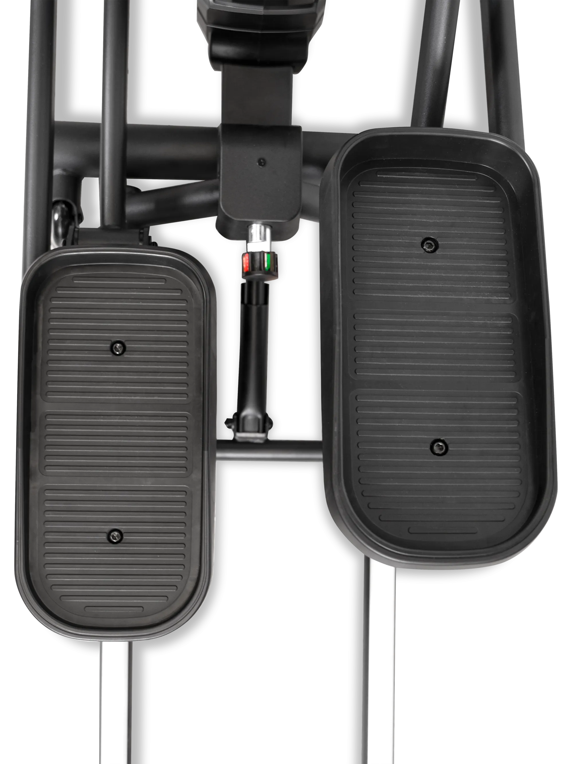 Расстояние между педалями 80 мм способствует устойчивому положению ног, а трёхкомпонентный шатун повышает надёжность педального узла и срок службы тренажёра.