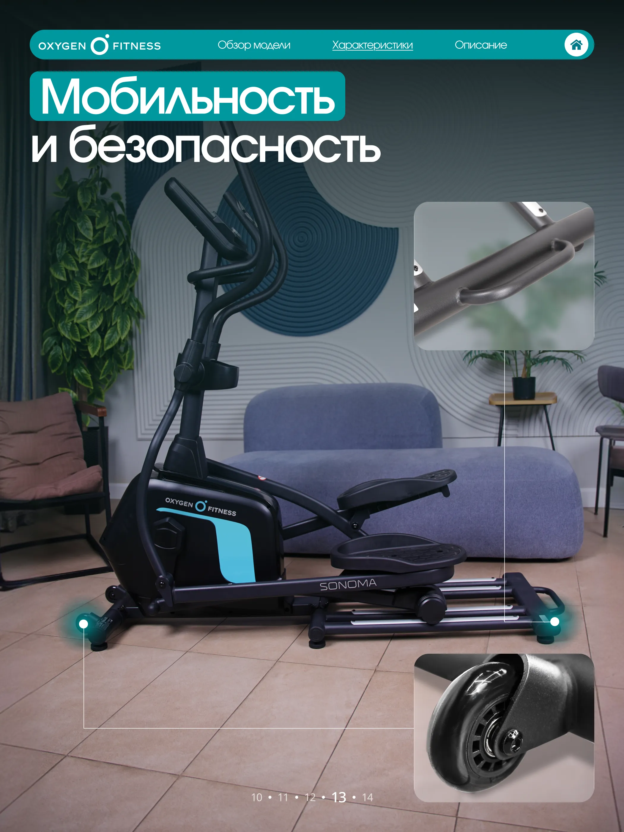 OXYGEN FITNESS SONOMA — сбалансированный эллиптический тренажёр для дома, который объединяет комфортную биомеханику, современные технологии и функциональность, необходимую для эффективных и разнообразных кардиотренировок.