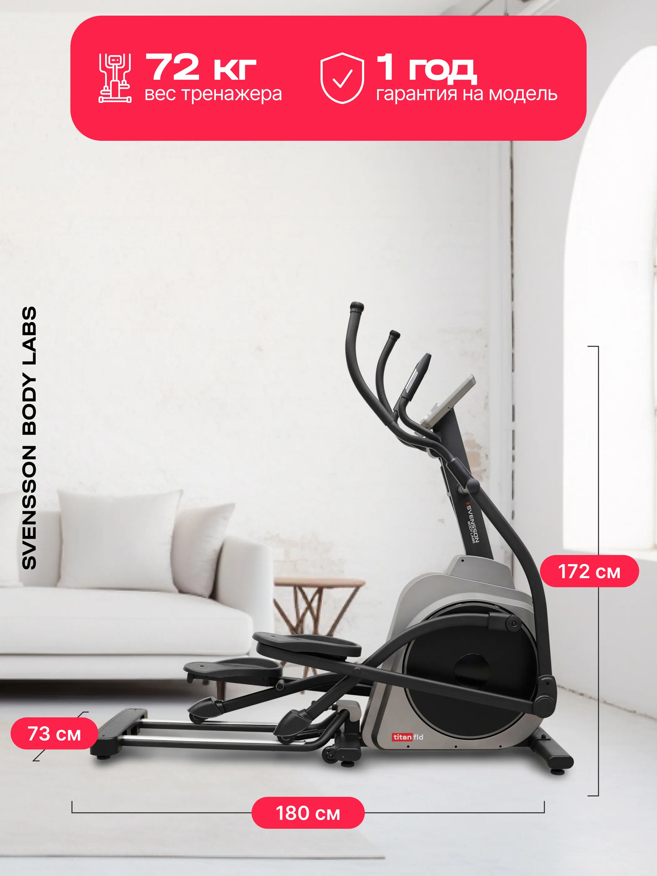 Эллиптический тренажер SVENSSON BODY LABS TITAN FLD — это надежный и функциональный инструмент для достижения ваших фитнес-целей в комфортной домашней обстановке.