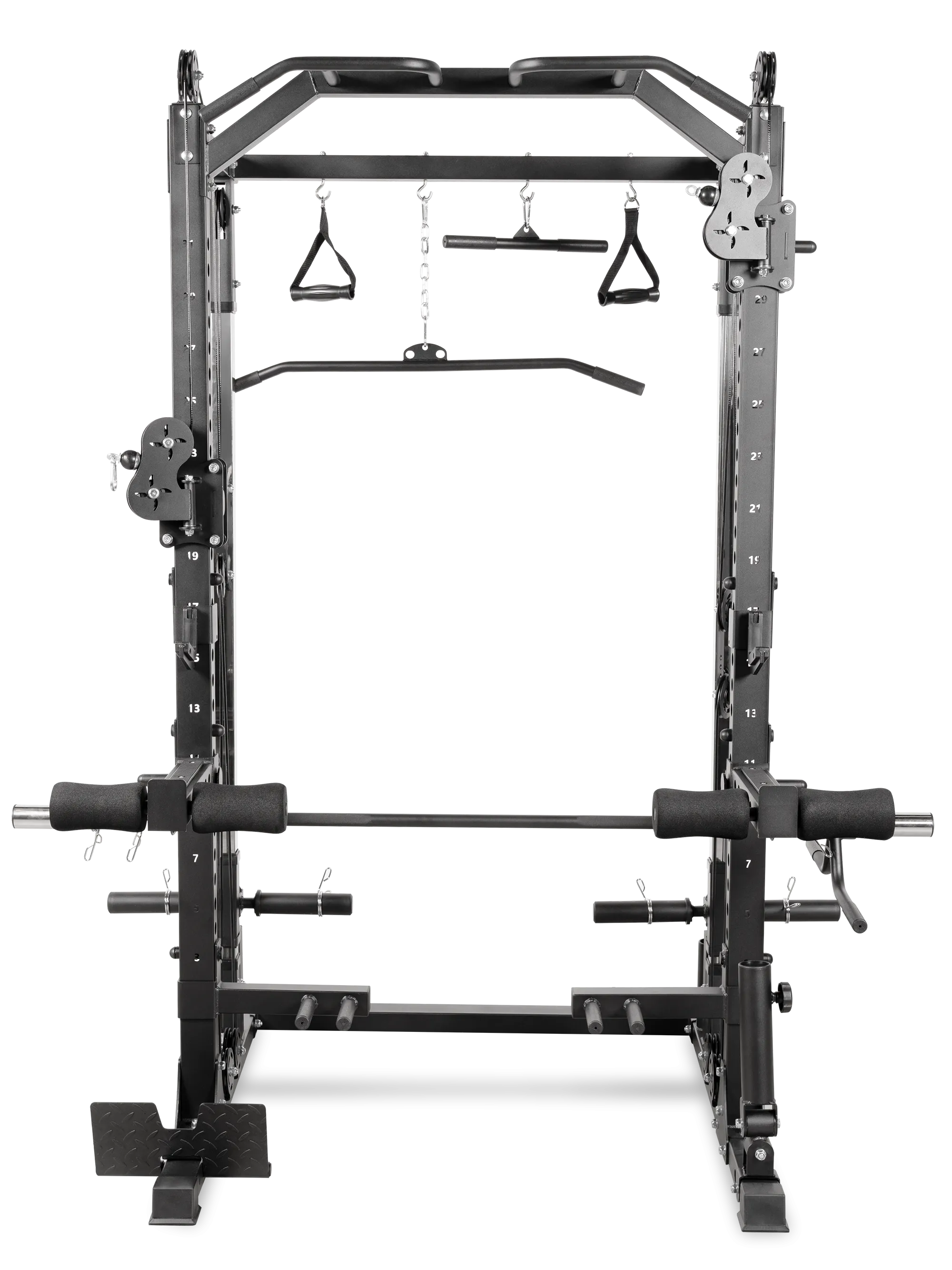OXYGEN FITNESS TREVIS - это универсальный силовой комплекс с полноценной машиной Смита, созданный для эффективных домашних тренировок с функционалом профессионального уровня. Конструкция работает со свободными весами и обеспечивает безопасное выполнение десятков упражнений: от жима и приседаний до тяг, кроссоверных движений и тренировок корпуса.