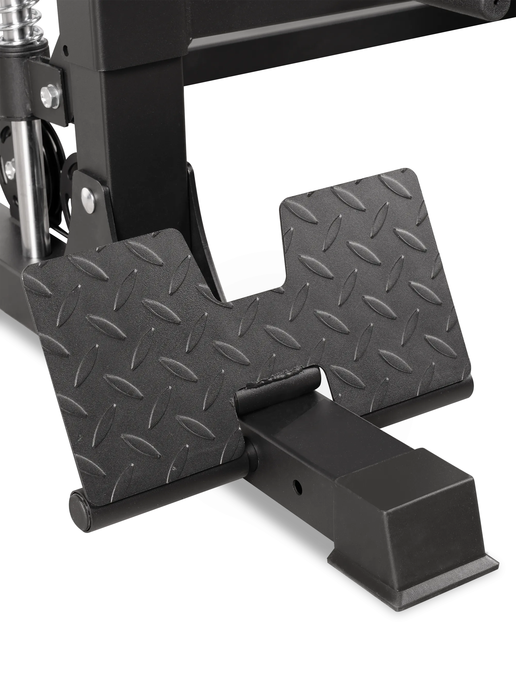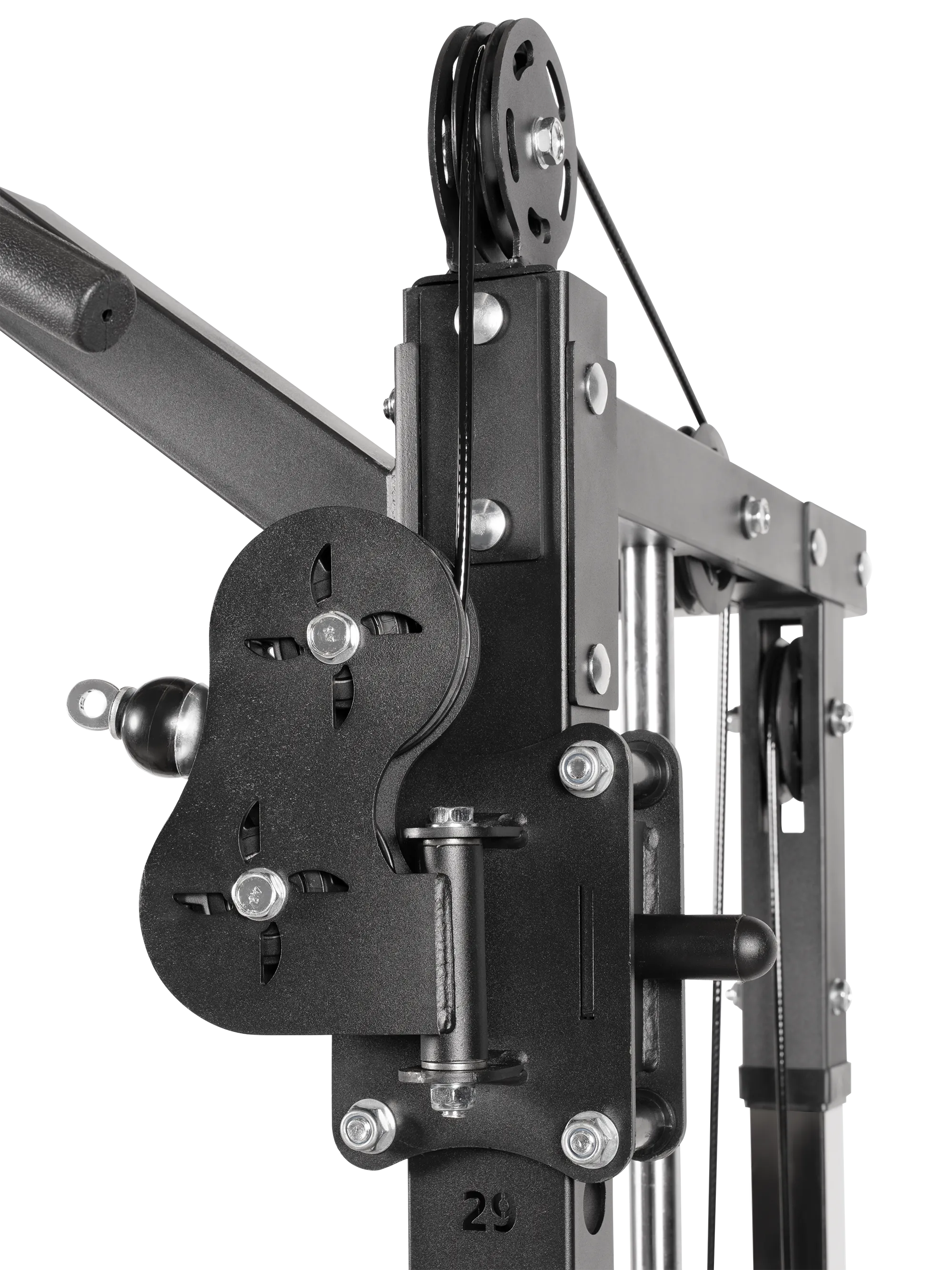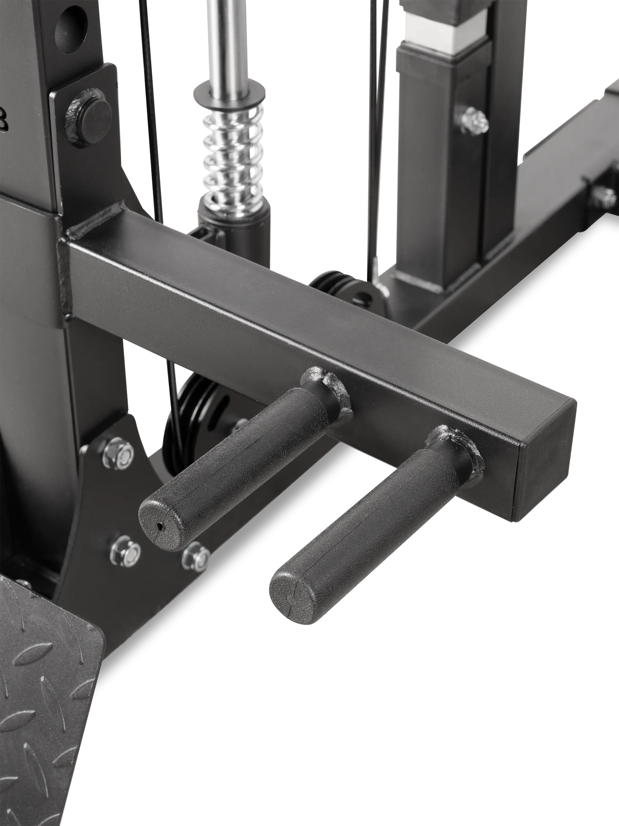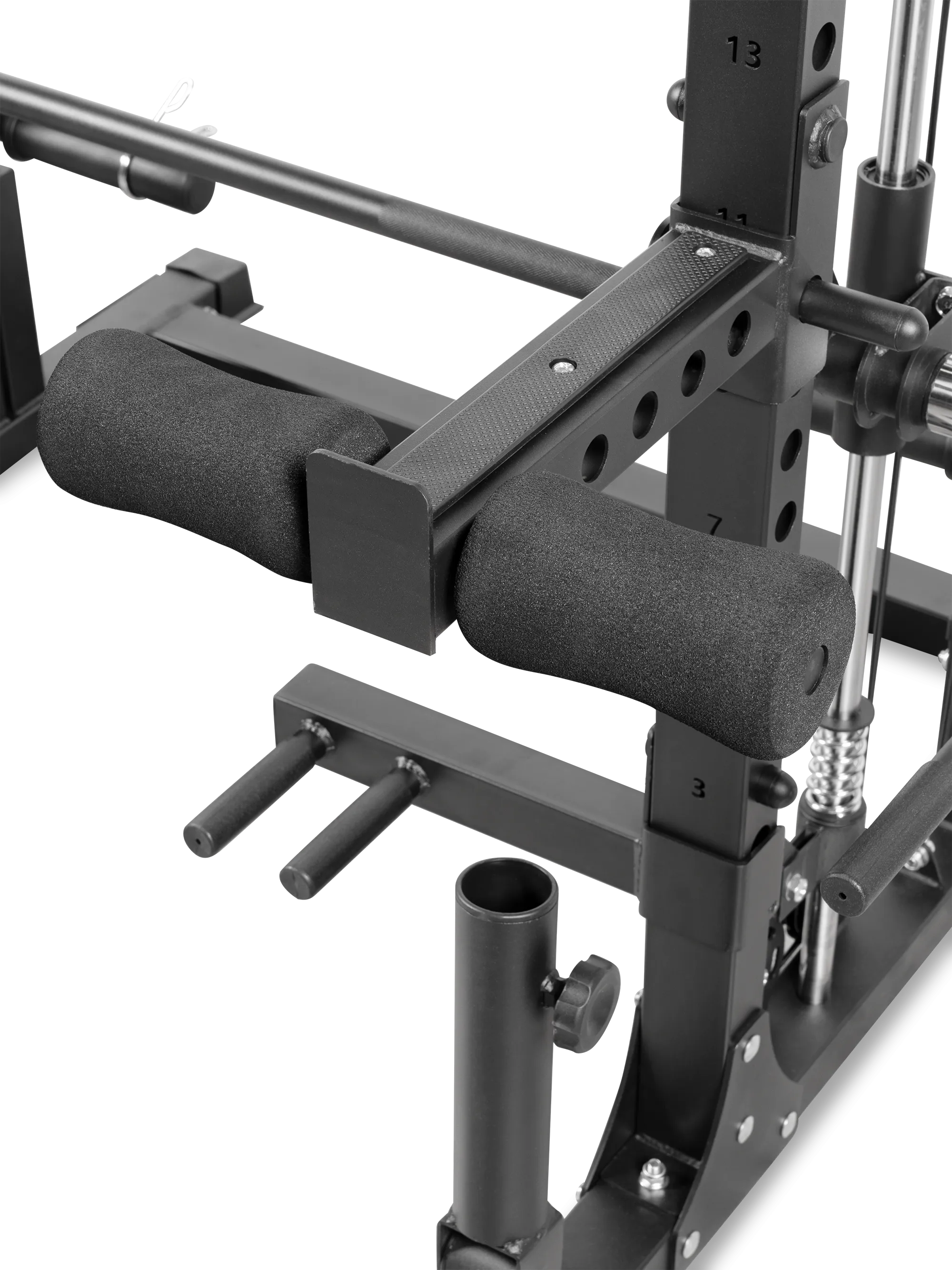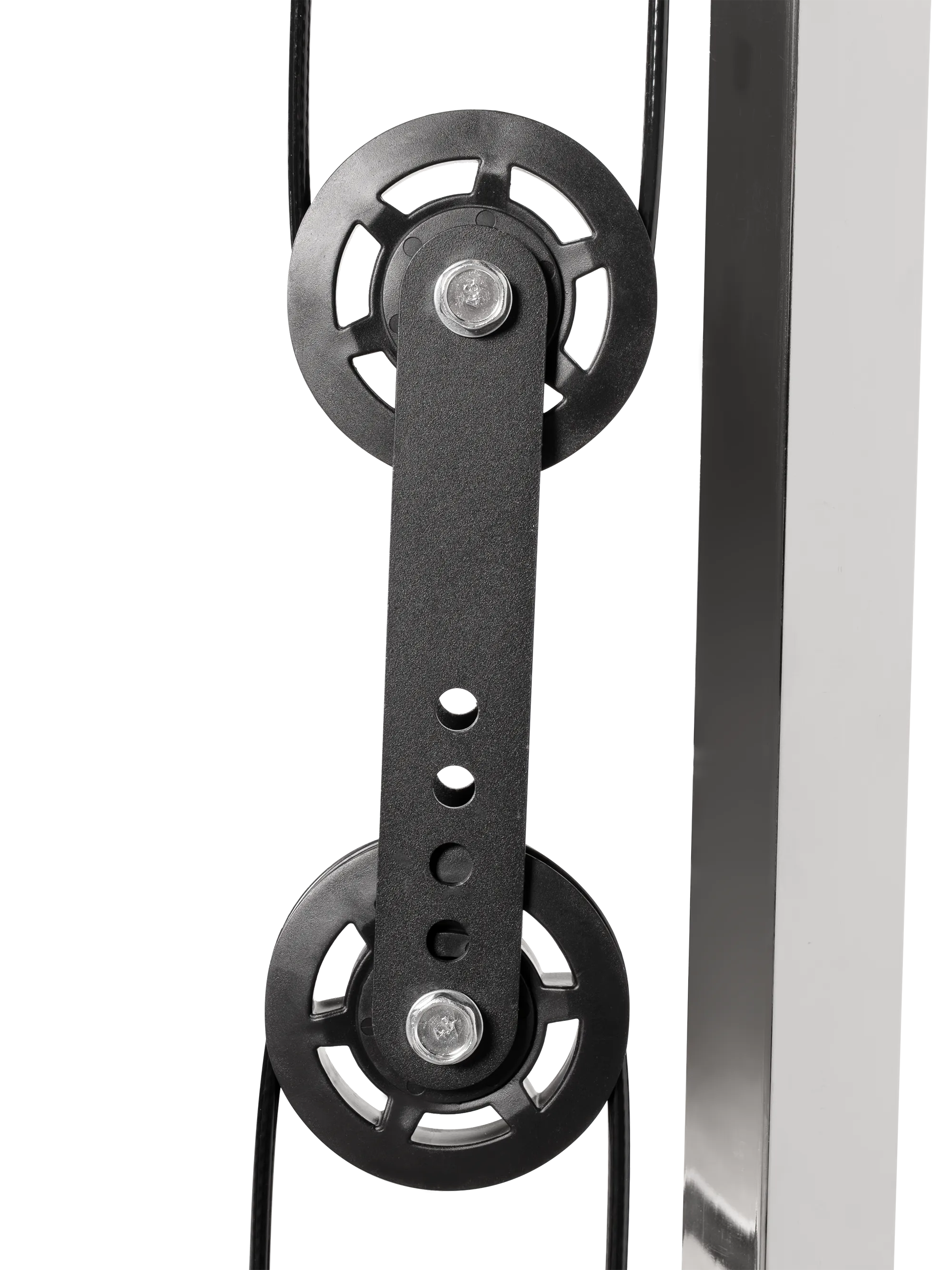 В конструкции предусмотрены различные точки опоры: подставка для ног для горизонтальной тяги, упор для отжиманий, а также регулируемые валики для ног Ø80 мм (6 уровней настройки).