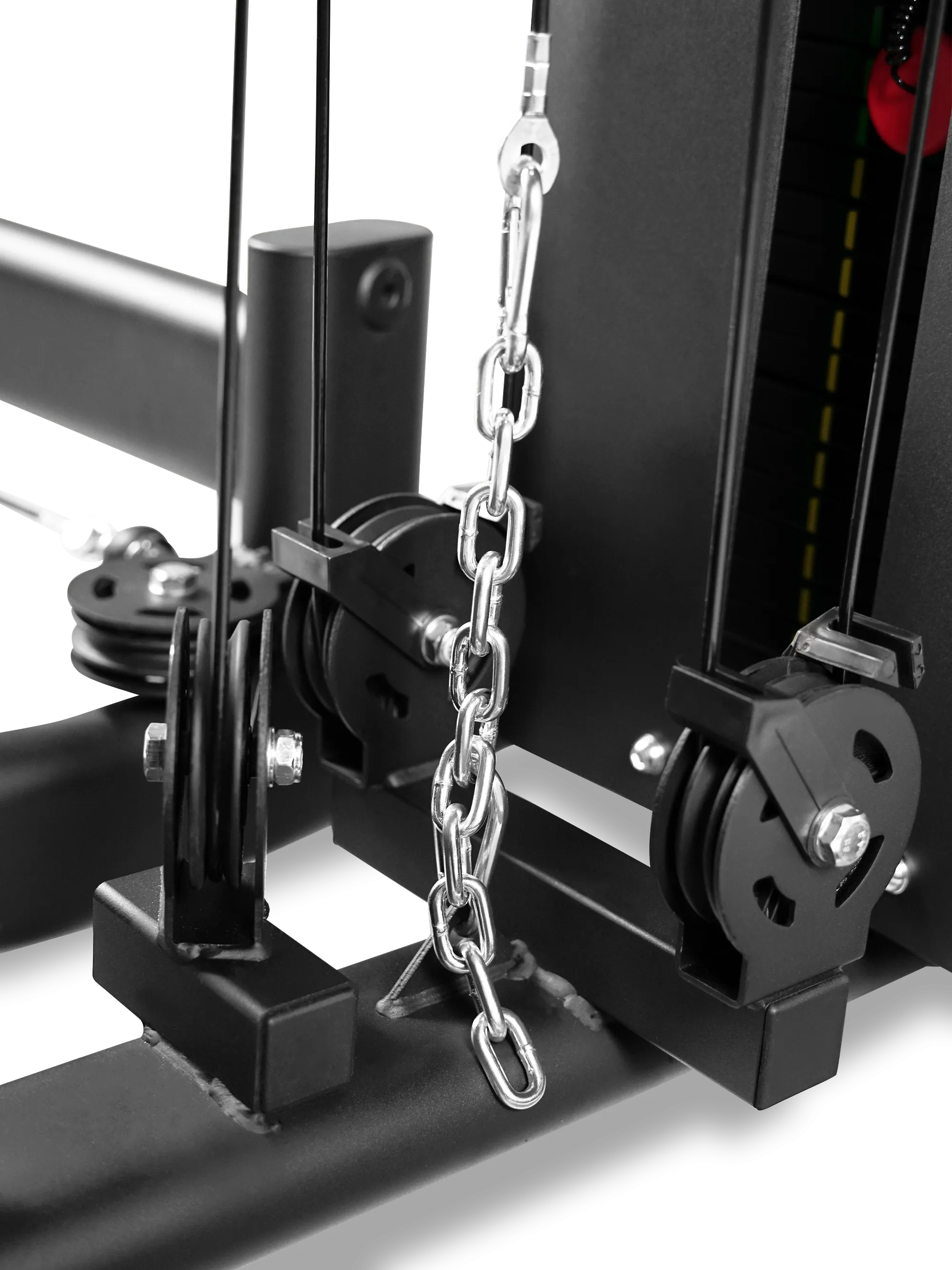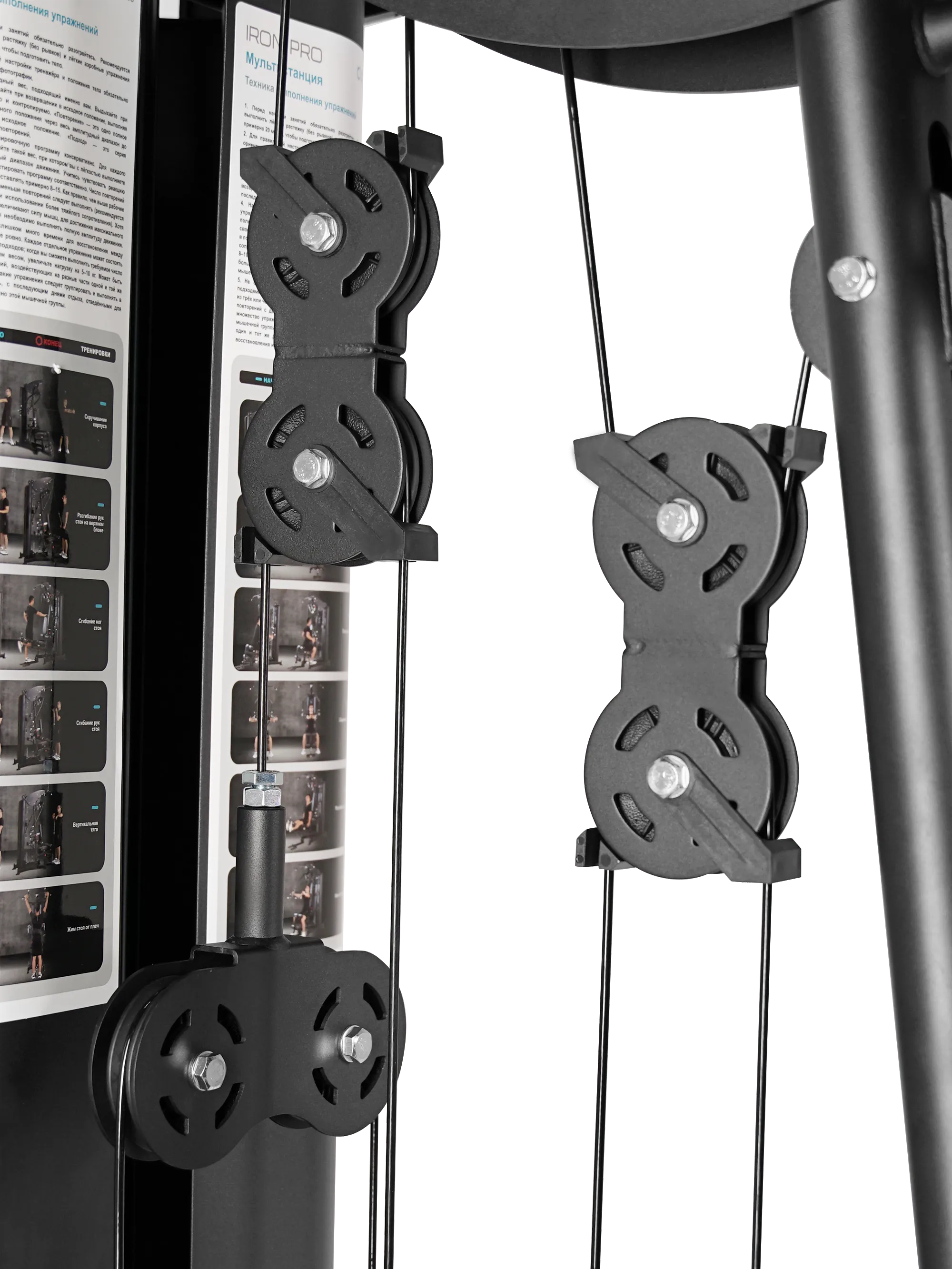 Конструкция станции рассчитана на пользователей весом до 150 кг, а рабочая нагрузка достигает 90 кг, что позволяет выполнять силовые тренировки различной интенсивности — от базовых упражнений до серьезных силовых программ.