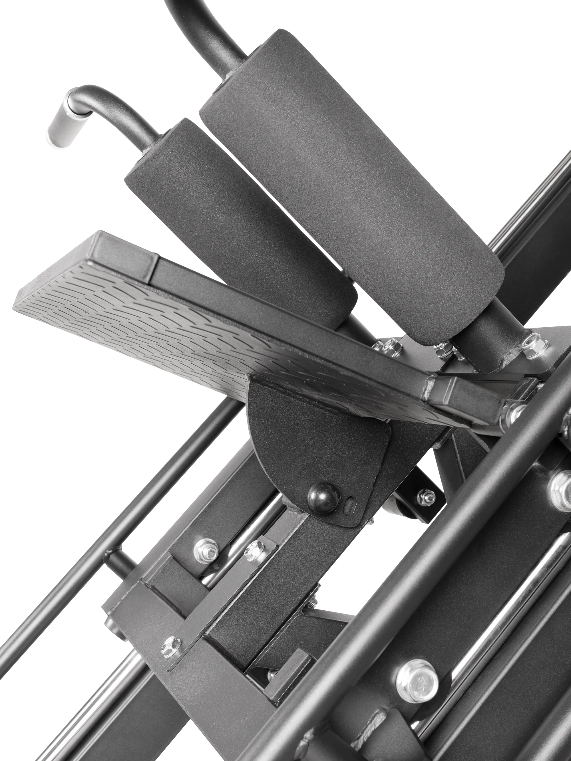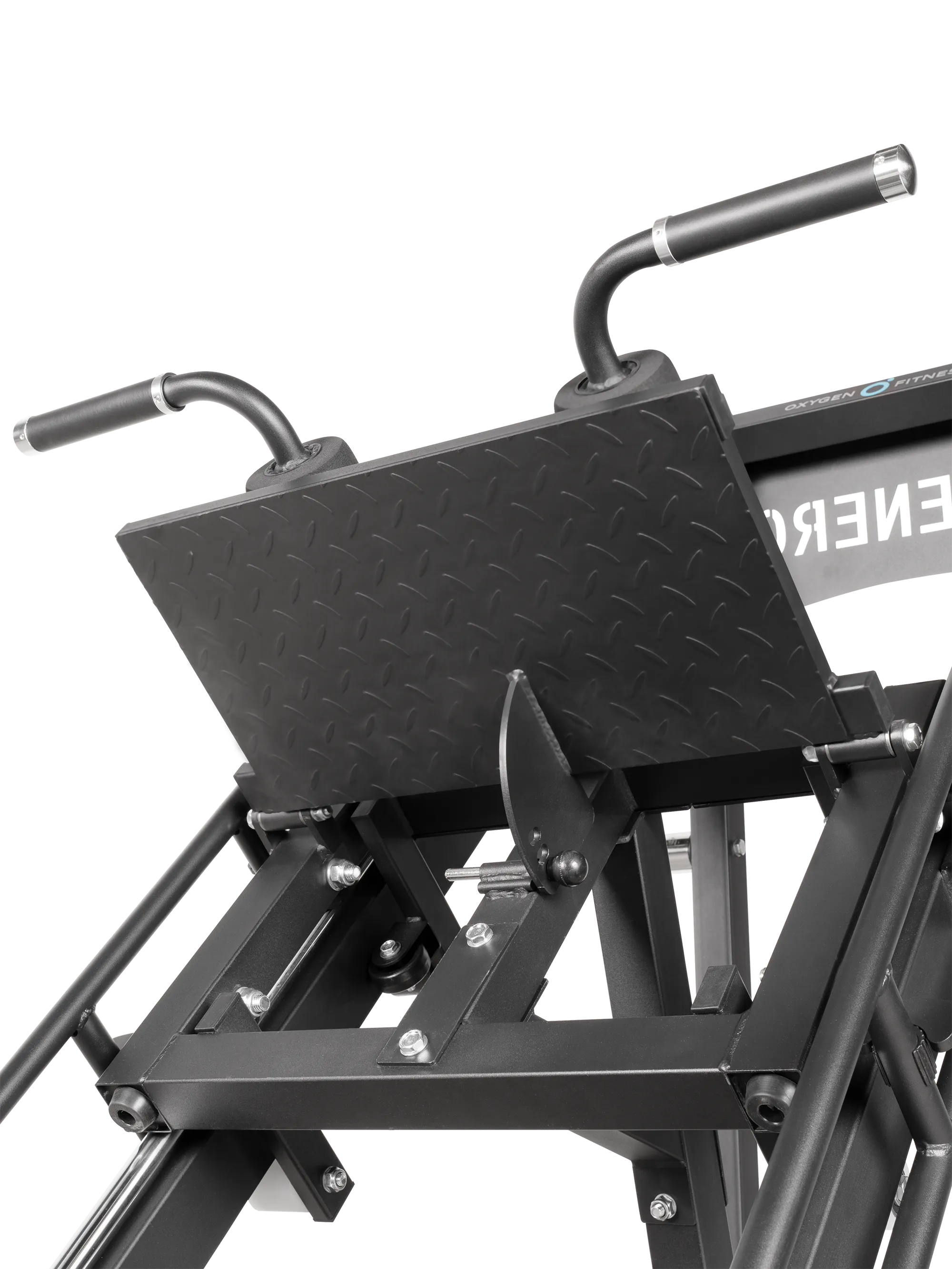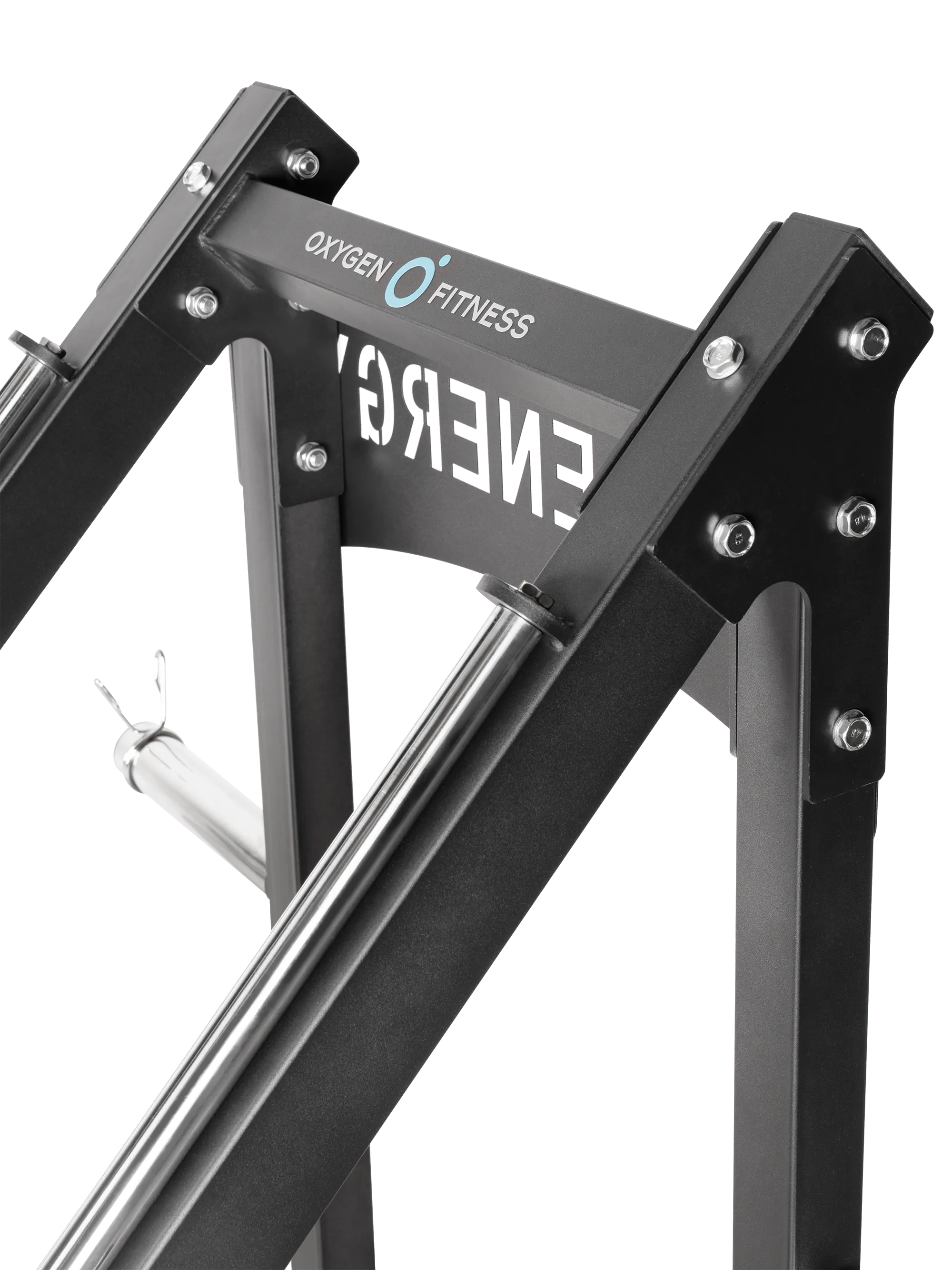 OXYGEN FITNESS BROOKS - это мощный комбинированный тренажёр для жима ногами и гакк-приседа, рассчитанный на домашнее использование, но выполненный на уровне профессионального силового оборудования. Конструкция работает со свободными весами, обеспечивая естественную биомеханику и точную нагрузку на мышцы нижней части тела. Продуманный угол платформы (45°) и жёсткая рама делают тренировки безопасными, стабильными и комфортными даже при интенсивных нагрузках.