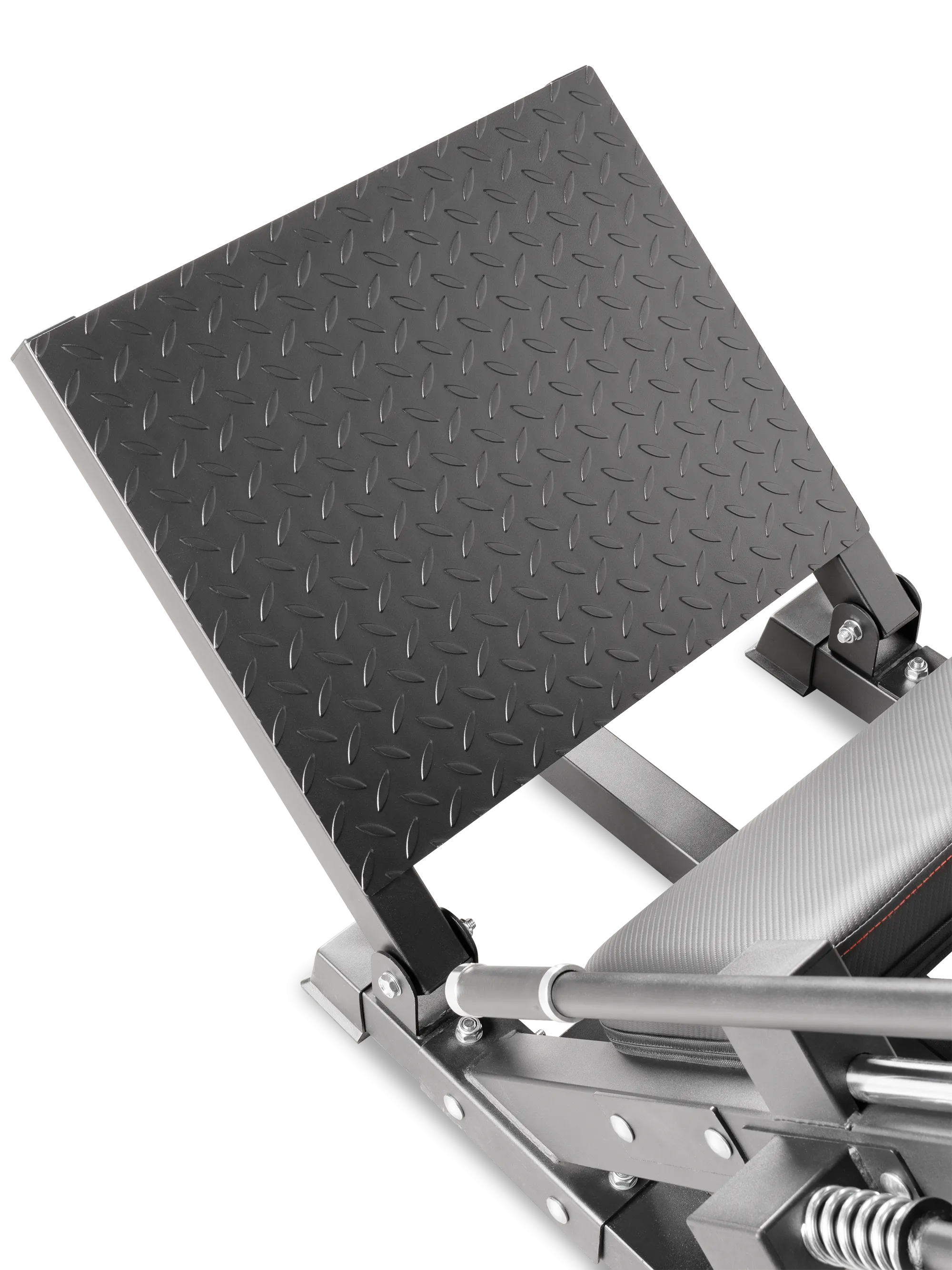 Основа тренажёра — усиленная стальная рама квадратного профиля 70×50 мм с толщиной стенки 1,5 мм, обеспечивающая жёсткость и долговечность. Рабочая платформа для ног размером 52×28 см даёт уверенную опору для всех видов постановки стопы.