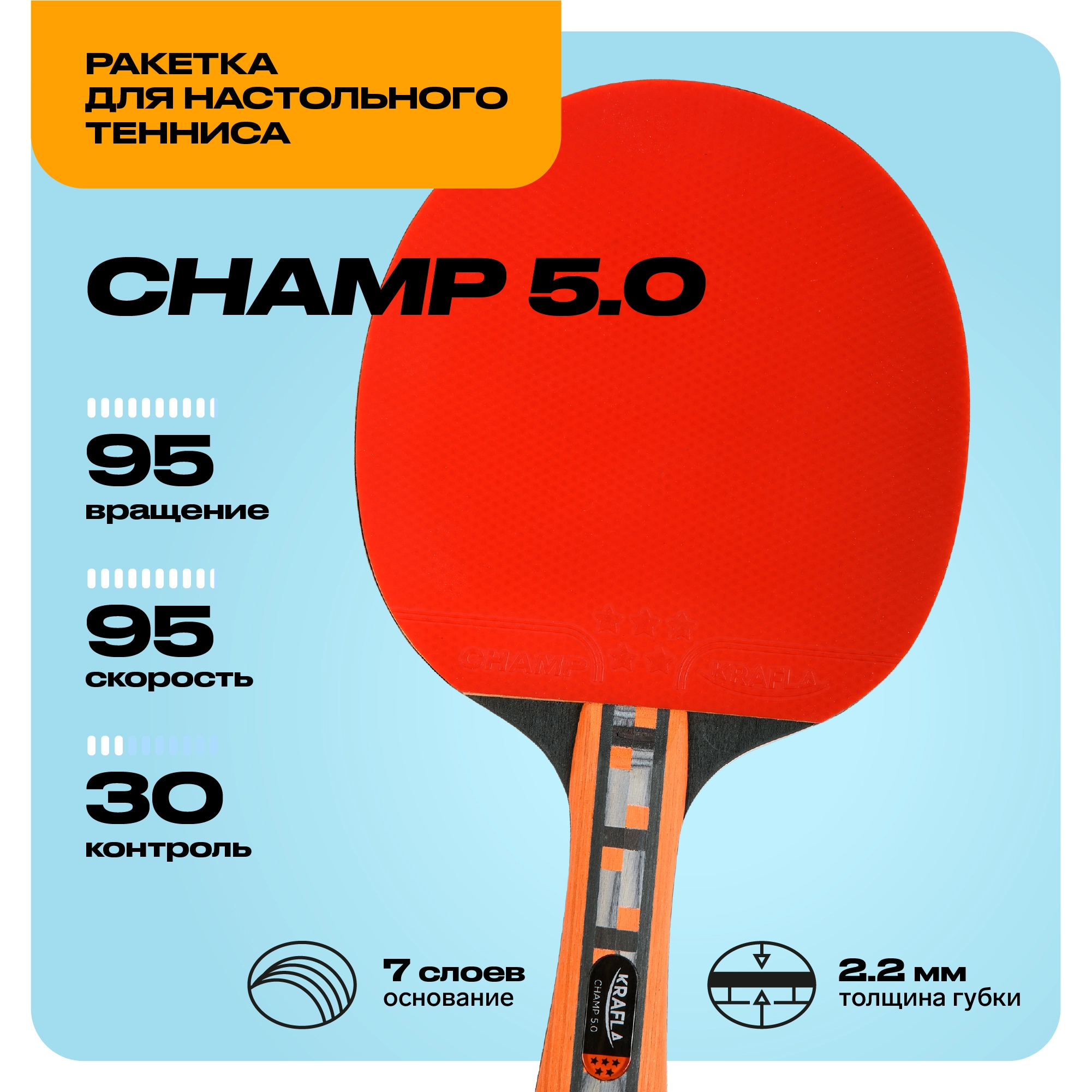 Ракетка для настольного тенниса KRAFLA CHAMP5.0 Настольный теннис