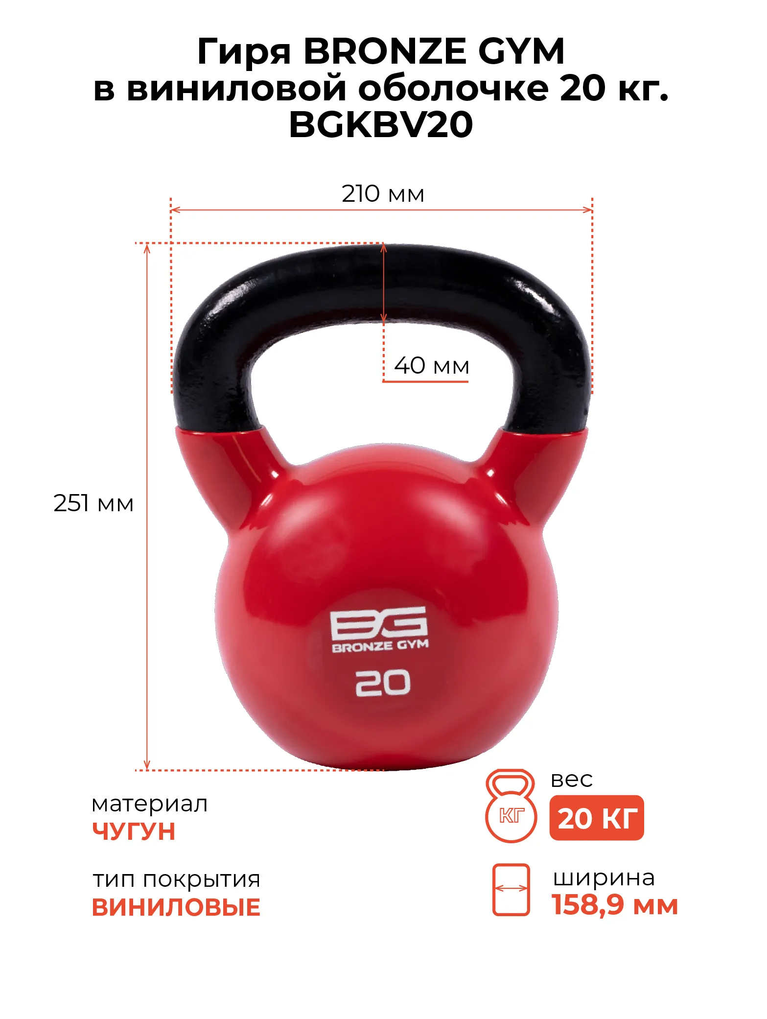 Гиря BRONZE GYM в виниловой оболочке 20 кг
