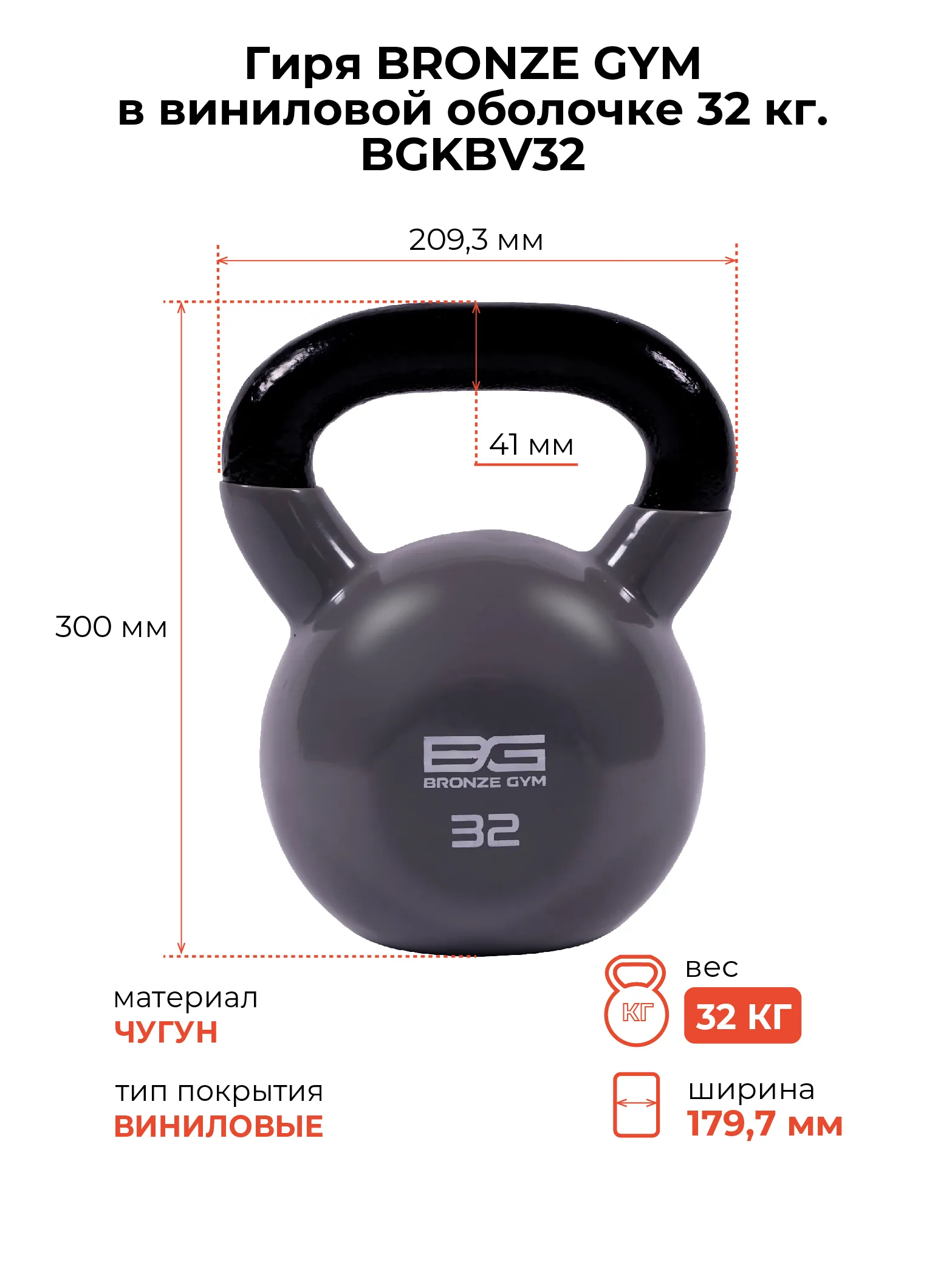 Гиря BRONZE GYM в виниловой оболочке 32 кг