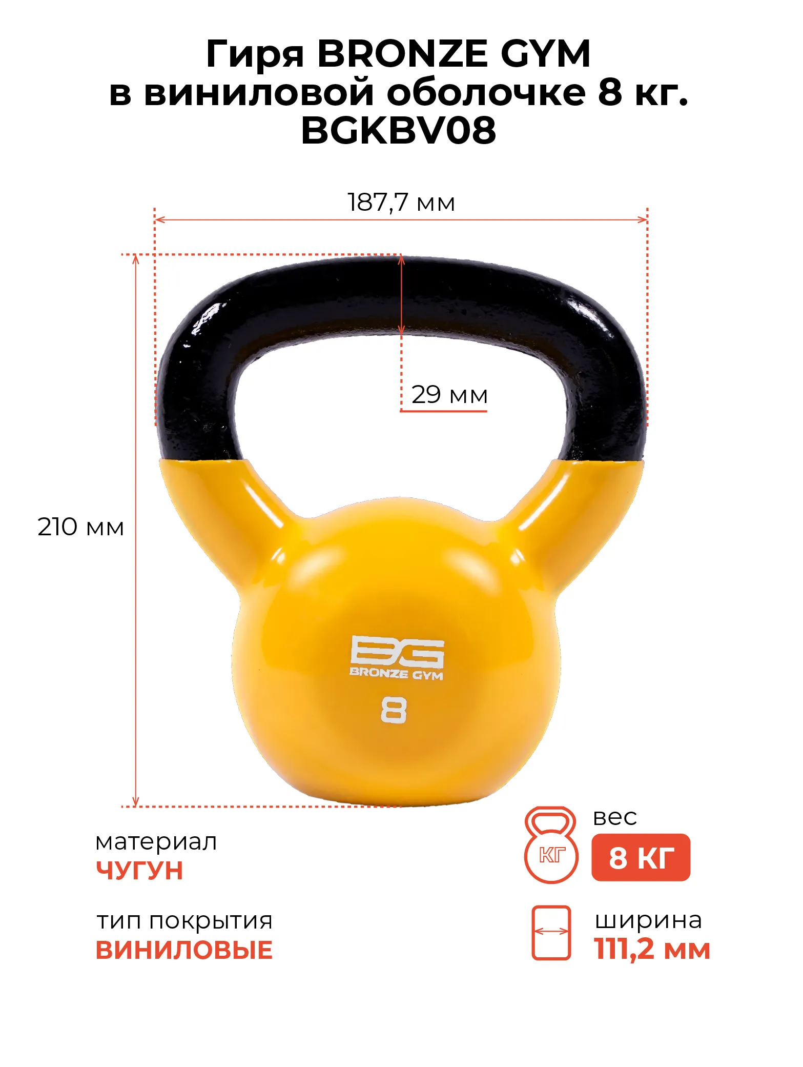 Гиря BRONZE GYM в виниловой оболочке 8 кг Гири