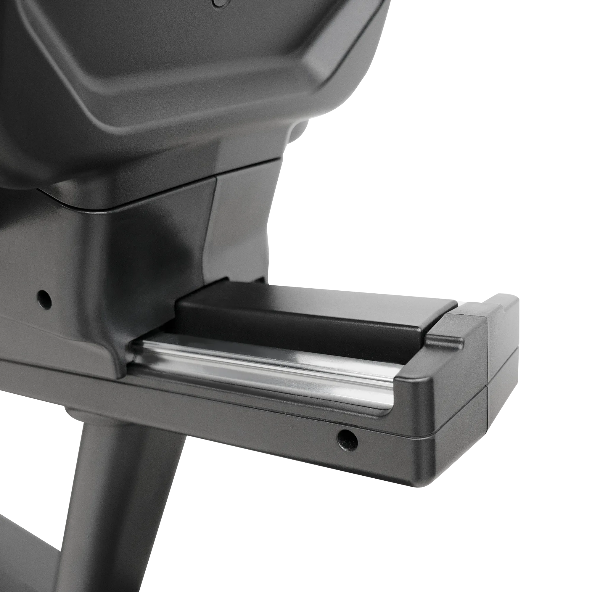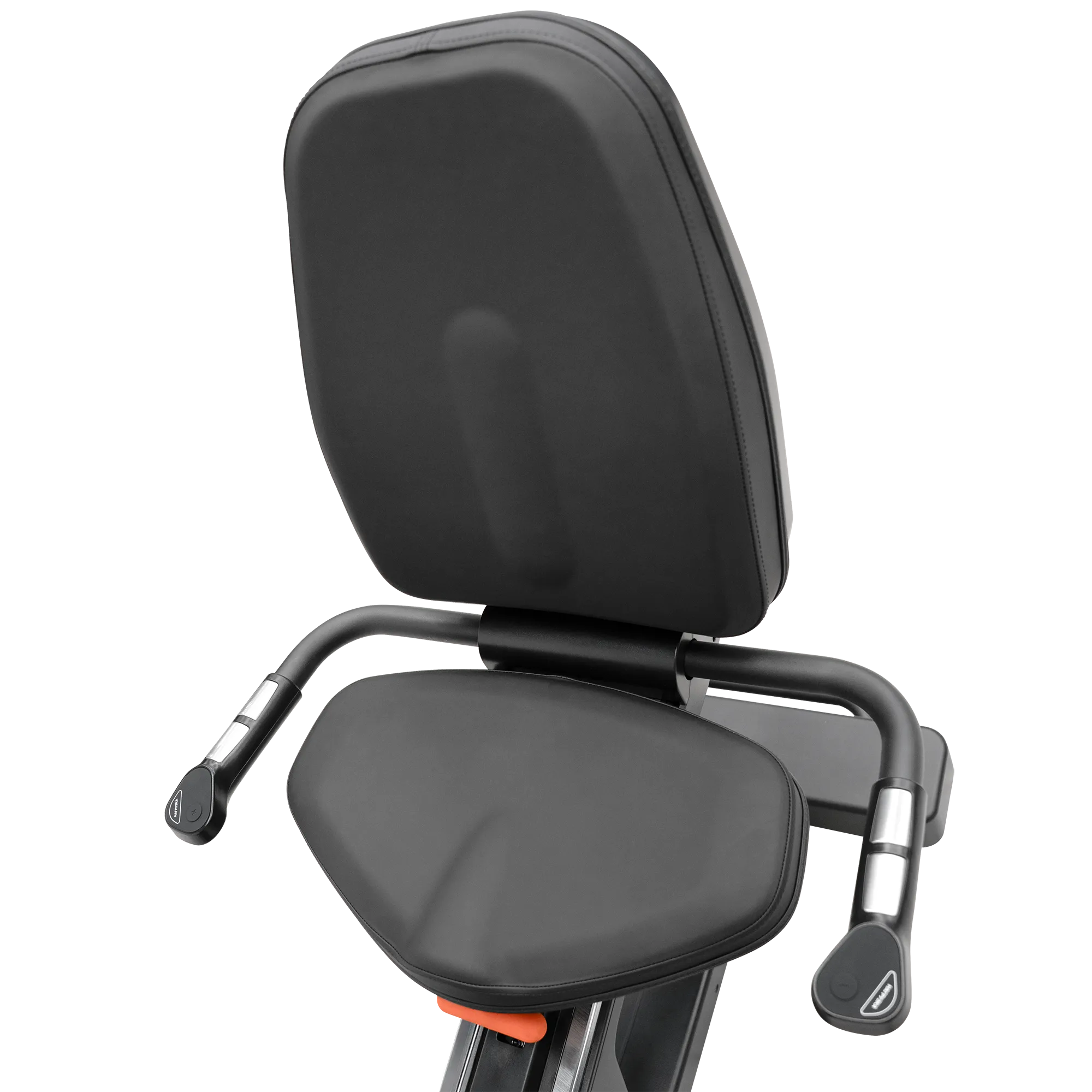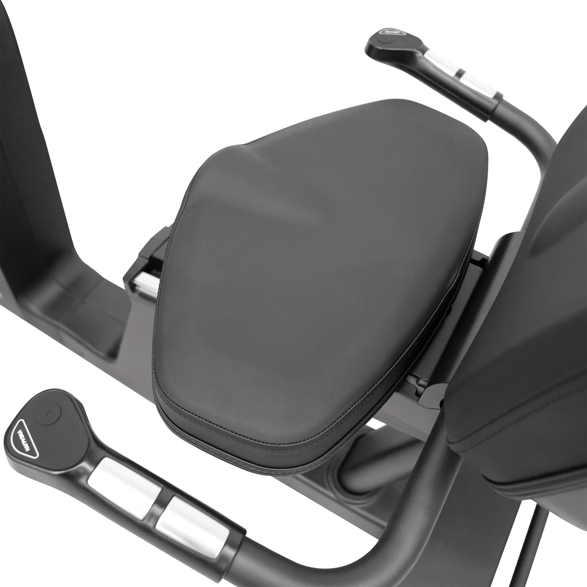Регулировка по горизонтали позволяет настроить посадку под любого пользователя. Удобные рукоятки с датчиками пульса и низкая рама обеспечивают лёгкую посадку и сход с тренажёра.