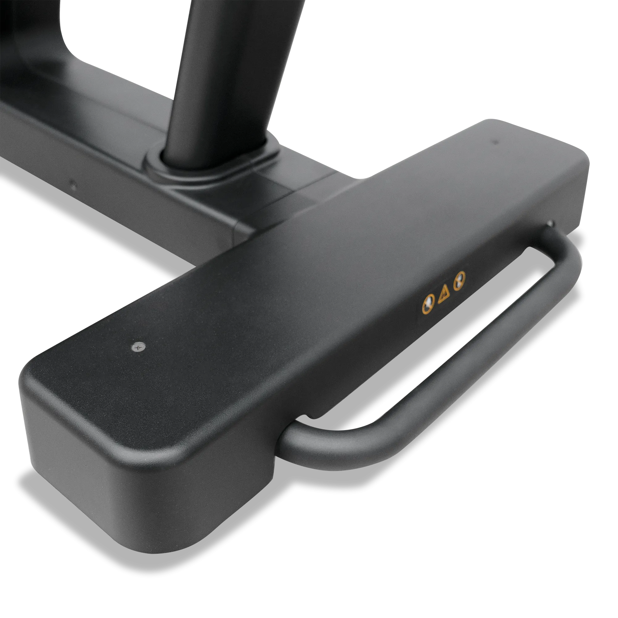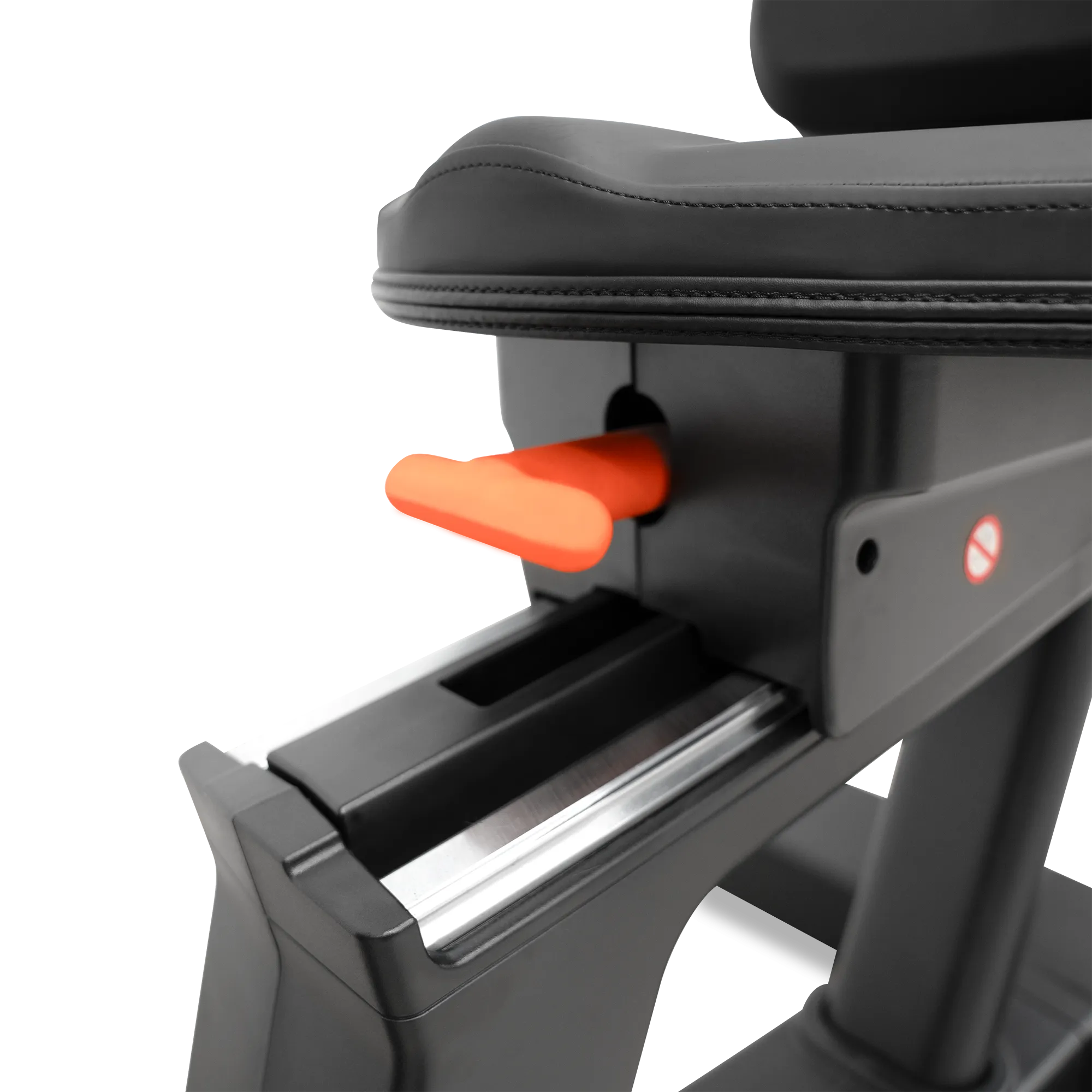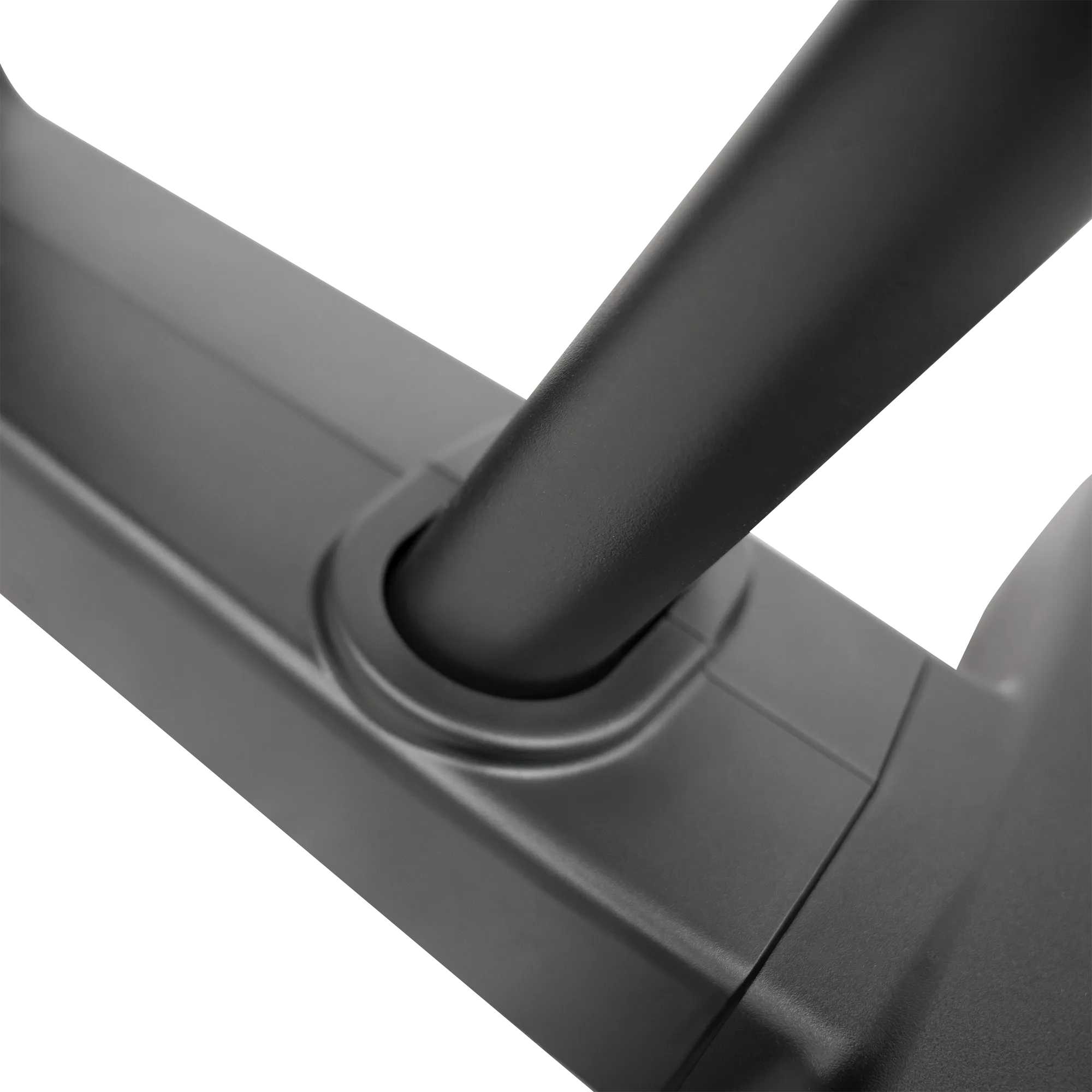 Регулировка по горизонтали позволяет настроить посадку под любого пользователя. Удобные рукоятки с датчиками пульса и низкая рама обеспечивают лёгкую посадку и сход с тренажёра.
