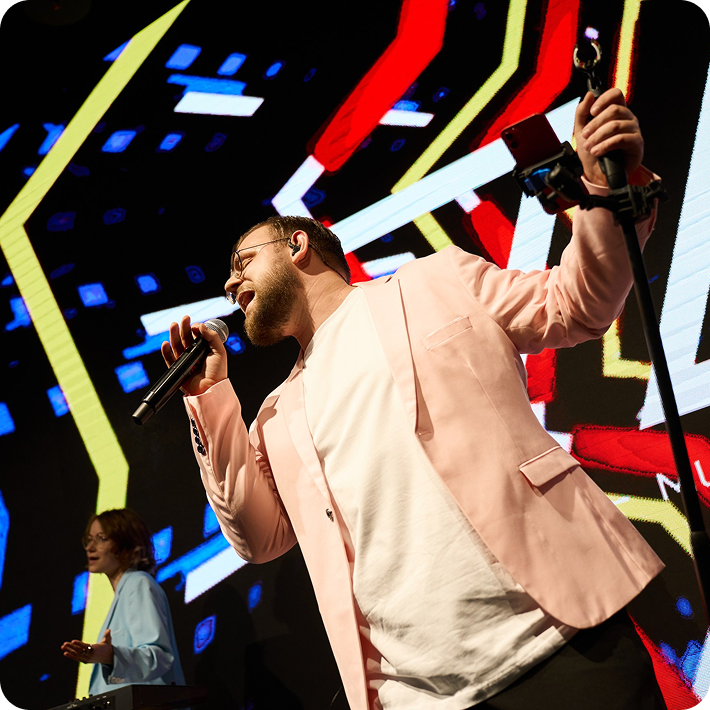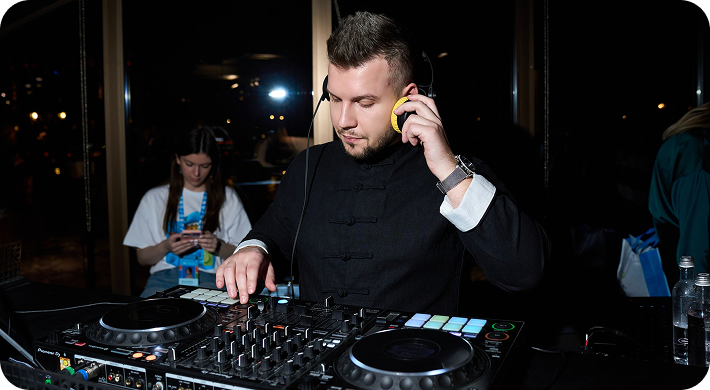 После официальной части формат сменился. 1С:Фитнес клуб отмечал День рождения, и участники перешли к вечернему Birthday Party. Живая музыка, диджей, неформальное общение без тайминга и жёсткого регламента. Здесь уже не обсуждали отчёты и показатели, но договорённости продолжали оформляться — только в более свободной атмосфере.
