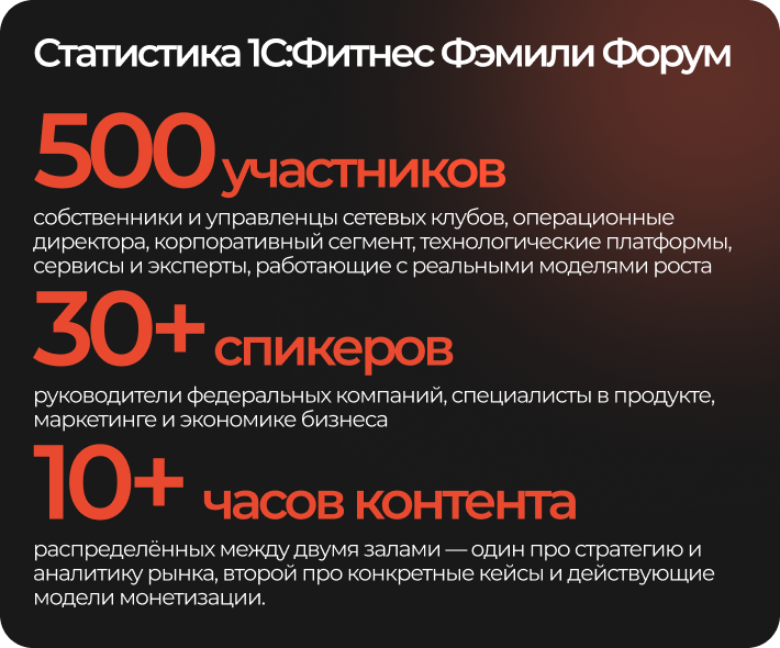 В Центре событий РБК пройдёт второй 1С:Фитнес Фэмили Форум, приуроченная ко Дню рождения организатора. Это профессиональное мероприятие, которое собирает индустрию в конце года и фокусируется не на подведении итогов, а на следующих шагах рынка.