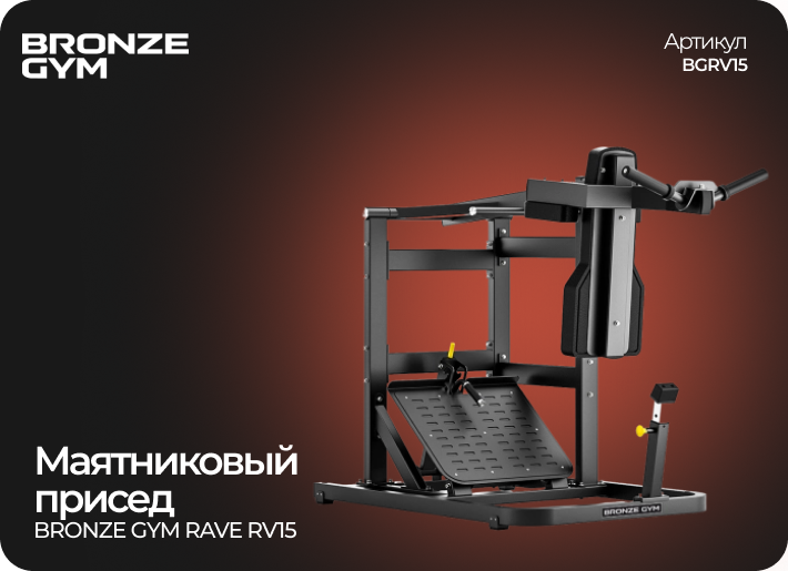 Речь идёт о тренажёре BRONZE GYM RAVE RV15 Маятниковый присед. Модель предназначена для проработки квадрицепсов, ягодичных и задней поверхности бедра. Удобная платформа с регулировкой угла, анатомическая спинка и система рычажного сопротивления позволяют сосредоточиться на технике и получить максимальную отдачу от каждого повтора.