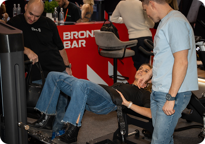 Ягодичная зона на базе серии NEO стала одним из самых обсуждаемых фрагментов стенда. В одном месте были собраны тренажёры для мостика, отведения, разгибания, работы с корпусом и стабилизаторами. Фактически это готовый модуль, который клуб может перенести к себе без доработок. Управляющие подходили с чёткими задачами, смотрели, как пользователи выстраивают движение, задавали вопросы по габаритам и компоновке, прикидывали, как такая связка станет частью женской или смешанной зоны. Многие прямо на стенде обсуждали с менеджерами конкретные проекты и резервировали позиции под переоснащение.