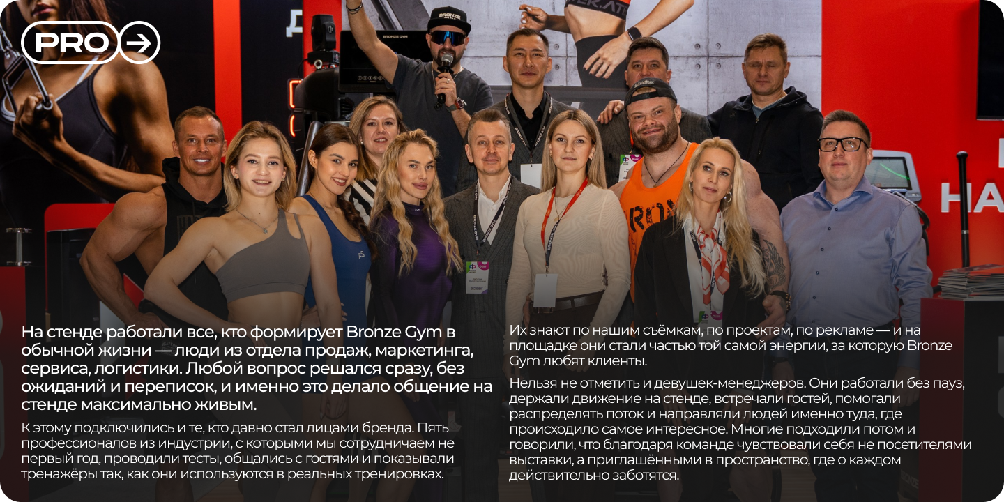 На тренажёрах всё время кто-то занимался, пробовали мостики, тяги, приседы, кардио, моделировали свои программы, обсуждали, как оборудование встроится в действующие схемы клубов. Люди приходили с задачами и уходили с пониманием, что именно из увиденного будет работать у них. Многие вопросы по комплектации, срокам и условиям закрывались прямо на стенде, без длинной переписки после выставки.