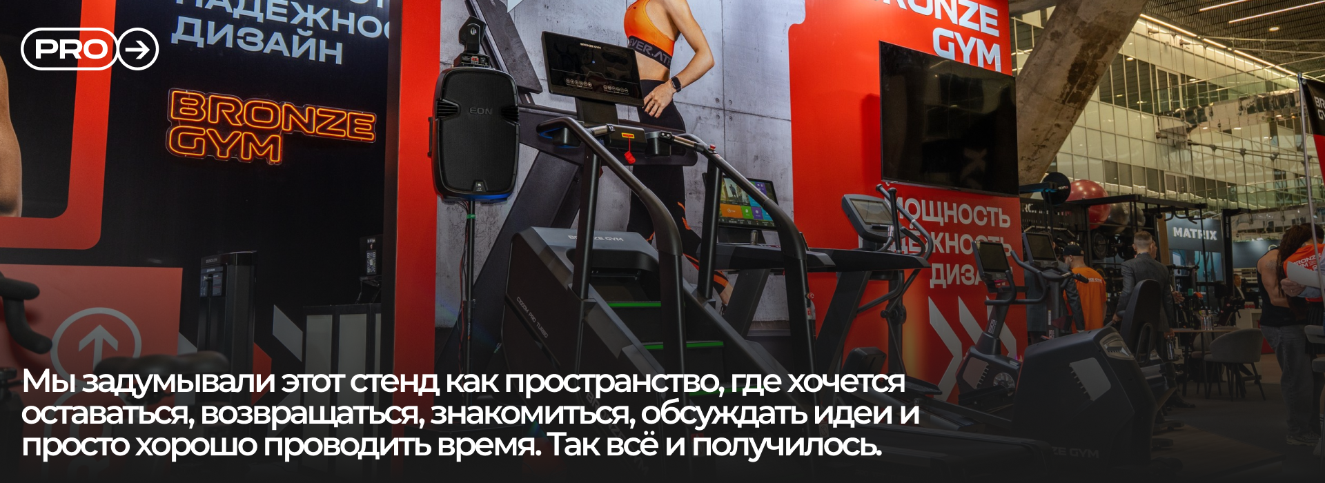 Мы заранее заявили, что в этом году привезём в Сколково не витрину отдельных моделей, а цельный фитнес-клуб. И именно так всё выглядело на площадке.