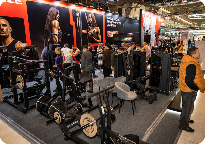 Пространство площадью 154 кв. м. было собрано как единая тренировочная среда - всего более 30 моделей силового и кардио и около 120 позиций аксессуаров. Это настоящая возможность пройтись по зонам и понять, как оборудование ведёт себя в реальных сценариях. Поток аудитории только усиливал эффект — около 4 000 участников деловой программы и примерно 10 000 посетителей за три дня проходили через пространство, останавливались, тестировали, обсуждали.